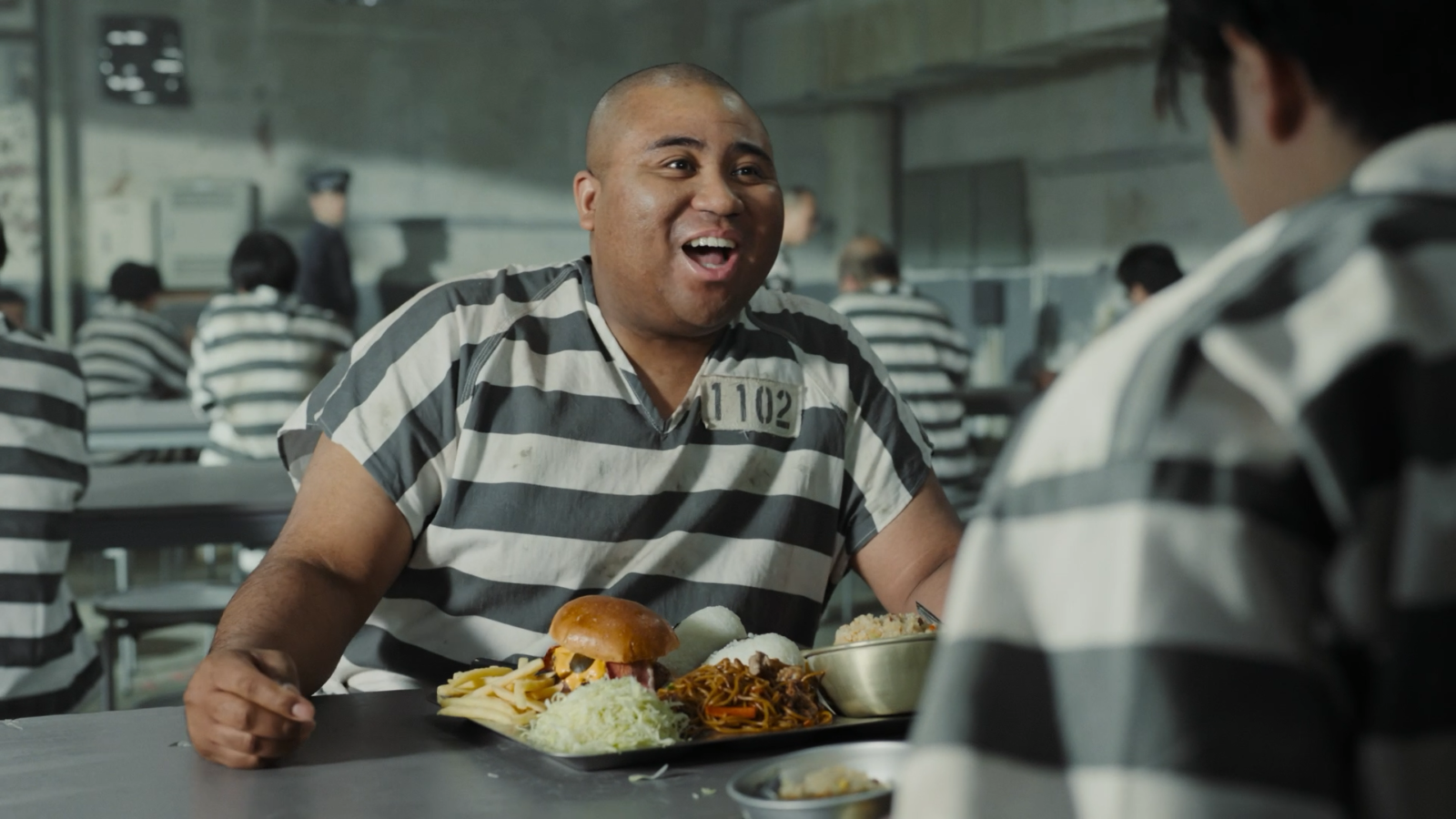 リアルに作り込まれた監獄内の食堂のセットなど、細部までこだわった映像が、ブランドの強烈な個性をより印象的に引き立てています。